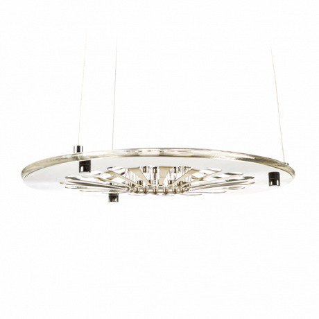 Светильник оснащен 24 лампочками накаливания, дающими теплый фактурный свет. Изделие подвешивается к потолку на трех тонких тросах, которые будучи практически незаметными надежно его фиксируют. Напряжение (V): 220.
