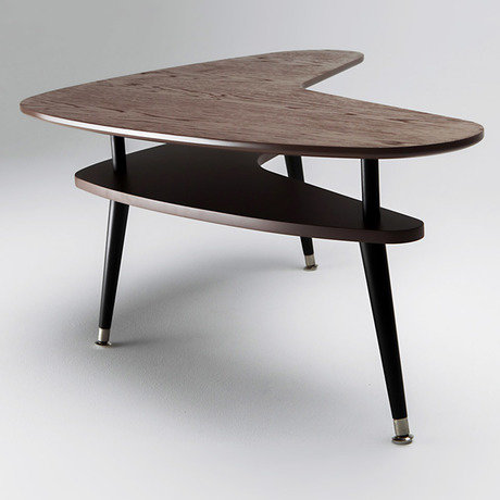 Бумеранг выполнен в классическом модернистском стиле 50-х г.г., который с легкостью сочетает в себе функциональность и эстетику. Верх столешницы покрыт крашеным в кофейный цвет дубовым шпоном; 2-я столешница полностью покрашена в кофейный цвет; ножки – покрашены в темно-коричневый цвет. Инструкция по сборке прилагается.