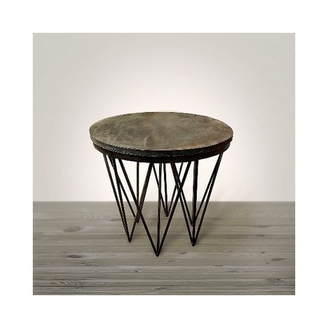 Великолепный кофейный столик на прямых металлических ножках, дополненный массивной каменной столешницей.