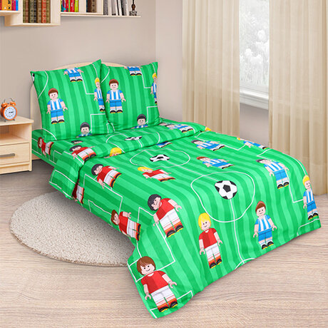КПБ 'ДайПоспать', 1,5 спальный с 2-мя наволочками 70х70, бязь, 100 % хлопок, пл. 125 гр./кв.м., 'Футболисты'