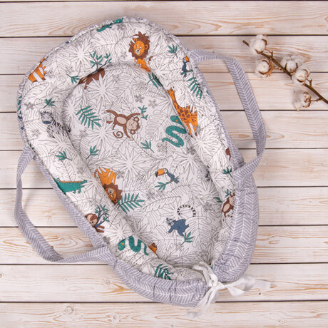 Название: | Кокон 'Гнёздышко' для новорождённых 'BabyRelax' 50х75, с ручками, съёмный матрасик 'Сафари б/з' |