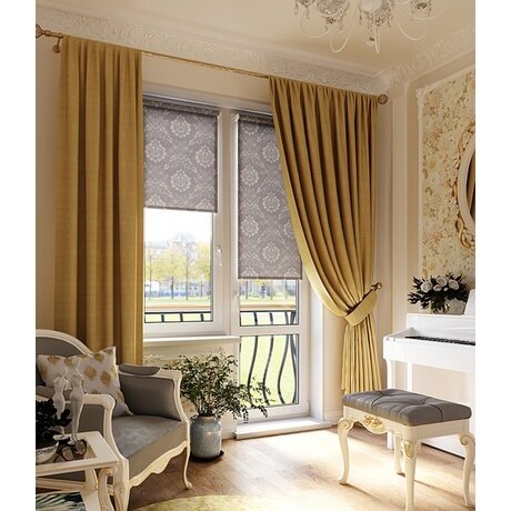 Рулонные шторы серии Шарм идеально подходят для интерьера в классическом стиле. Жаккардовая ткань с рельефным плетением добавит роскоши в ваш интерьер. Ролеты приглушают свет в помещении за счет светопроницаемости всего 20%.Вешать рулонные шторы можно с плотными портьерами, с тюлем или как самостоятельный элемент. Возможен монтаж на "глухую" или поворотно-откидную створку, стену, потолок.Размеры указаны по ширине полотна. Общий размер: ширина полотна + 3,5см. Состав ткани – 100% полиэстер. Устойчивы к выцветанию, с пыле-влаго стойкой пропиткой.В комплект входят: 1 рулонная штора и крепежные элементы.