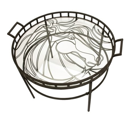 Искусное изображение коня с роскошной развевающейся гривой передает всю энергию, мощь и движение, наделяет этот столик собственным характером. Материал: кованый металл; стекло