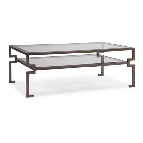 Коктейльный столик из серии Caracole Contemprory, столик одновременно простой и оригинальный. У столика металлическая основа, стеклянные столешница и полка. Столик выполнен в отделке бронзовый металл.