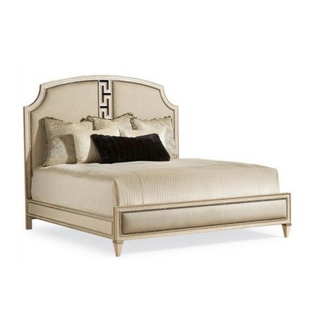 Эффектная кровать Carleton с тканевым изголовьем и узором «греческий ключ» словно переносит нас в эпоху старого Голливудского гламура. Блестящие серебристые гвоздики и ножки конической формы прекрасно сочетаются с серебристо-беловатой отделкой.