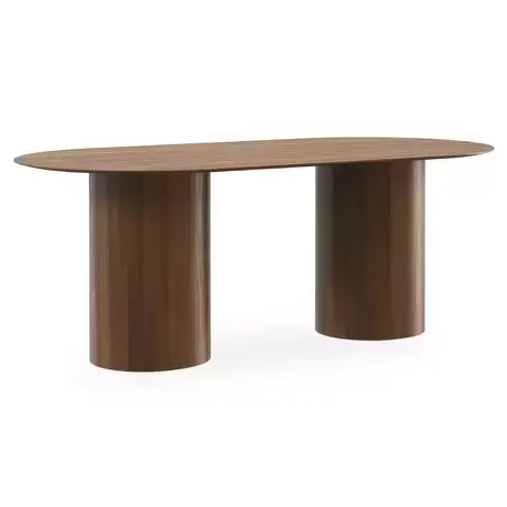 - Натуральный шпон — уникальный рисунок дерева делает каждый стол неповторимым - Овальная форма без углов — безопасно для семей с детьми и удобно для размещения большой компании - Цилиндрические опоры — устойчивая конструкция с дополнительным утяжелением в 12 кг