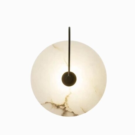 Черная металлическая арматура, тонкая и изящная, служит надежной опорой для этой невесомой красоты. Контраст между холодным мрамором и строгим металлом придает светильнику современное звучание, подчеркивая его лаконичный дизайн.