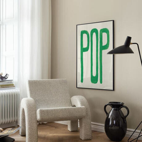 Нарисованный вручную мотив с надписью «POP» ярко-зеленого цвета. Мотив является частью коллекции «Ателье № 02», созданной нашими штатными дизайнерами для Postery Atelier.