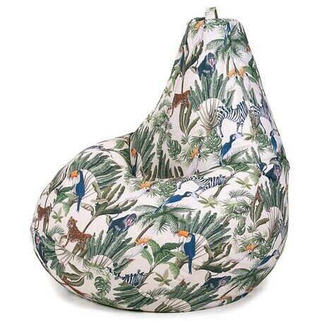 Кресло-мешок груша Джунгли зовут ХХL-Миди бело-зеленого цвета