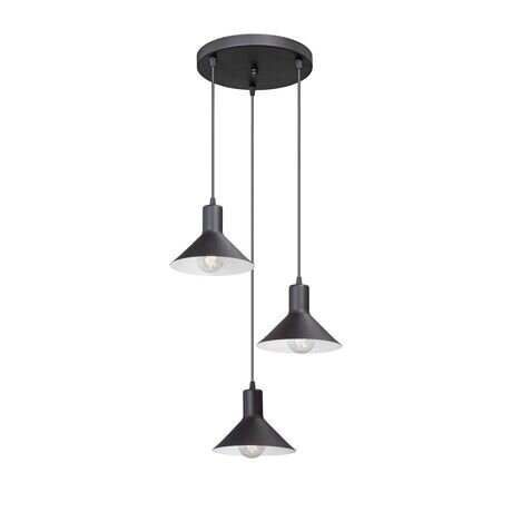 Светильник прекрасно подойдет для помещений от 7 кв.м. Каскадная конструкция с тремя плафонами оптимальна для столовых зон, кухонных островов или прикроватного освещения. Матовый черный цвет арматуры делает светильник уместным как в минималистичных интерьерах, так и в более декоративных стилях.Технические характеристики: