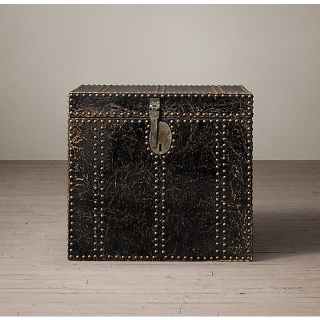 В 18 и 19 веках подобные дорожные сундуки использовались для перевозки ценностей по всему свету. Современная репродукция изготовлена из цельной древесины сосны и обита натуральной кожей. Красивая патина на ее поверхности создана для того, чтобы изделие максимально напоминало годами путешествовавший старинный сундук. Фурнитура из состаренной латуни и сотни прибитых вручную гвоздиков служат той же цели. Полностью ручная работа. Латунные ручки для переноски, расположенные по бокам. 1 латунный запор над овальной накладкой с замочной скважиной. Предусмотрены отверстия для вентиляции хранящихся внутри предметов