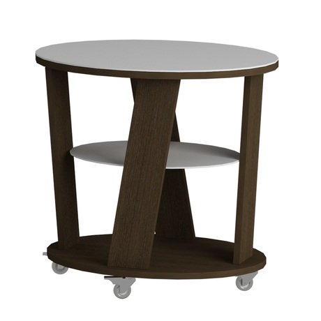 Комплектация - С полками, Вес - 12, Высота - 56.5, Глубина - 45.3, Ширина - 60.3, Тип - Журнальный, Цвет каркаса - Венге, Цвет столешницы - Белый, Материал каркаса - ЛДСП, Материал столешницы - Стекло, Форма - Овальный.