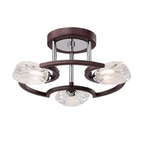 Назначение светильника: для гостиной, Стиль светильника: модерн, Тип: потолочная, Материал светильника: металл, стекло, Диаметр: 355 мм, Высота: 170 мм, Количество ламп: 3 шт., Тип лампы: галогенная, Мощность: 40 Вт, Патрон: G9, Цвет арматуры: коричневый/хром