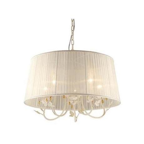 Назначение светильника: для спальни, Стиль светильника: классика, Тип: подвесная, Материал светильника: металл, ткань, Диаметр: 600 мм, Высота: 400 мм, Количество ламп: 5 шт., Тип лампы: накаливания, Мощность: 60 Вт, Патрон: Е14, Цвет арматуры: белый