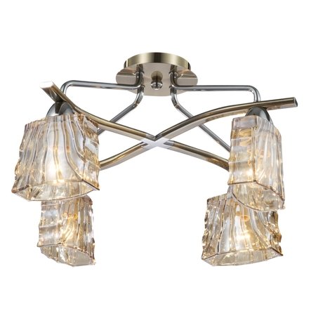 Назначение светильника: для гостиной, Стиль светильника: модерн, Тип: потолочная, Материал светильника: металл, стекло, Диаметр: 480 мм, Высота: 260 мм, Количество ламп: 4 шт, Тип лампы: накаливания, Мощность: 60 Вт, Патрон: Е14, Цвет арматуры: античная бронза/хром