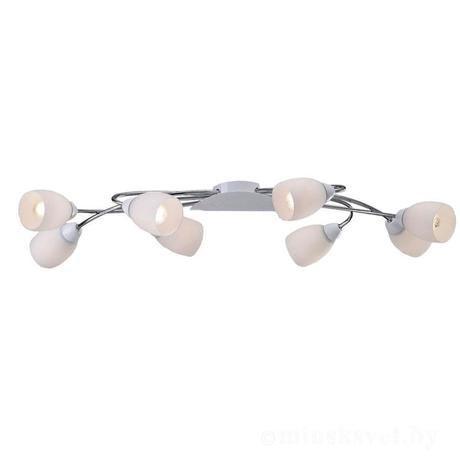 Назначение светильника: для гостиной, Стиль светильника: модерн, Тип: потолочная, Материал светильника: металл, стекло, Длина (мм): 950, Ширина: 495 мм, Высота: 250 мм, Количество ламп: 8 шт., Тип лампы: накаливания, Мощность: 40 Вт, Патрон: Е14, Цвет арматуры: хром