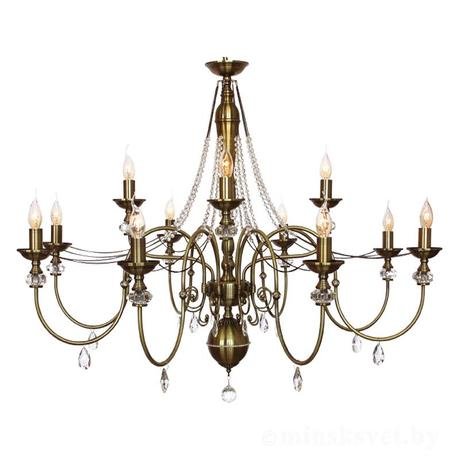 Назначение светильника: для гостиной, Стиль светильника: классика, Тип: подвесная, Материал светильника: металл, Диаметр: 1050 мм, Высота: 730 мм, Количество ламп: 12 шт., Тип лампы: накаливания, Мощность: 40 Вт, Патрон: Е14, Цвет арматуры: античная бронза