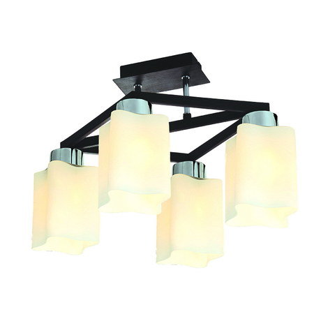 Патрон: Е14, Назначение светильника: для гостиной, Стиль светильника: модерн, Цвет арматуры: хром/венге, Мощность: 40 Вт, Вес брутто: 2 кг, Тип лампы: накаливания, Количество ламп: 4 шт, Тип: потолочная, Высота: 275 мм, Ширина: 355 мм, Материал светильника: металл, дерево, стекло, Пульт ДУ: нет, Длина: 432 мм