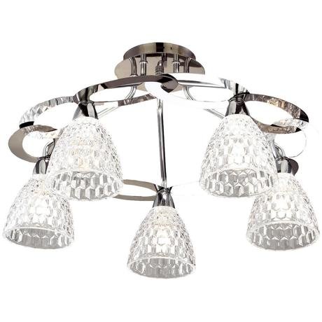 Назначение светильника: для спальни, Стиль светильника: модерн, Тип: потолочная, Материал светильника: металл, стекло, Диаметр: 530 мм, Высота: 250 мм, Количество ламп: 5 шт., Тип лампы: накаливания, Мощность: 60 Вт, Патрон: Е14, Цвет арматуры: хром/черный