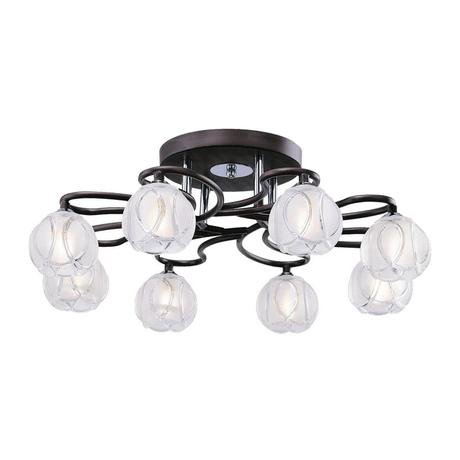 Назначение светильника: для гостиной, Стиль светильника: модерн, Тип: потолочная, Материал светильника: металл, стекло, Диаметр: 560 мм, Высота: 200 мм, Количество ламп: 8 шт., Тип лампы: галогенная, Мощность: 40 Вт, Патрон: G9, Цвет арматуры: коричневый/хром