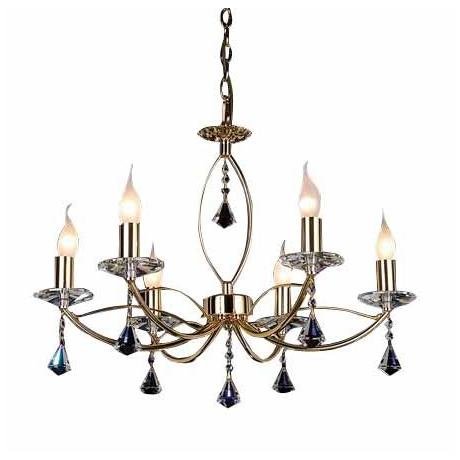 Назначение светильника: для гостиной, Стиль светильника: классика, Тип: подвесная, Материал светильника: металл, хрусталь, Диаметр: 640 мм, Высота: 1000 мм, Количество ламп: 6 шт., Тип лампы: накаливания, Мощность: 60 Вт, Патрон: Е14, Цвет арматуры: золото