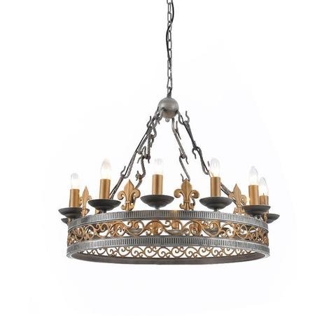Назначение светильника: для гостиной, Стиль светильника: ковка, Тип: подвесная, Материал светильника: металл, Диаметр: 750 мм, Высота: 450 мм, Количество ламп: 12 шт., Тип лампы: накаливания, Мощность: 60 Вт, Патрон: Е14, Цвет арматуры: серый