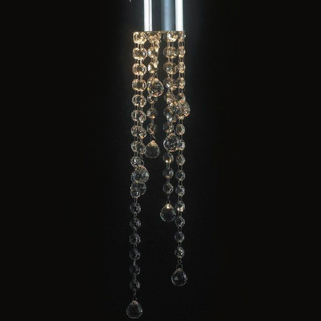 Настенный светильник из коллекции Perlina на хромированной арматуре. Плафон состоит из множества ниспадающих подвесок с прозрачными кулонами. Количество лампочек: 1; Мощность: 1 x 35 Вт; Тип лампы: Галогенная, GU10.
