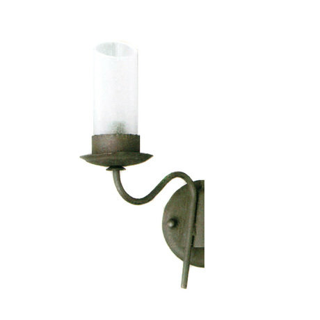 Бра однорожковое выполнено из кованного металла. Плафон из стекла матового белого цвета. Цвет арматуры: зелено-коричневый с патиной.