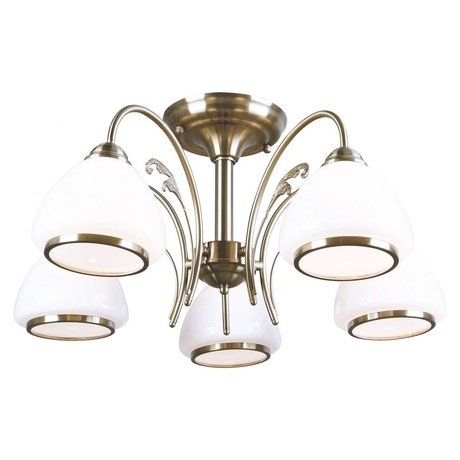 Производитель: MW-Light; Коллекция: Фелиция; Количество ламп: 5; Мощность лампы, W: 60; Общая мощность, W: 300; Площадь освещения, м2: 16,67; Тип лампочки (основной): Накаливания; Тип цоколя: E14; Напряжение, V: 220; Степень защиты, IP: 20; Материал арматуры: Металл; Материал плафонов: Стекло; Цвет арматуры: Бронза; Цвет плафонов: Белый; Место установки: На потолок