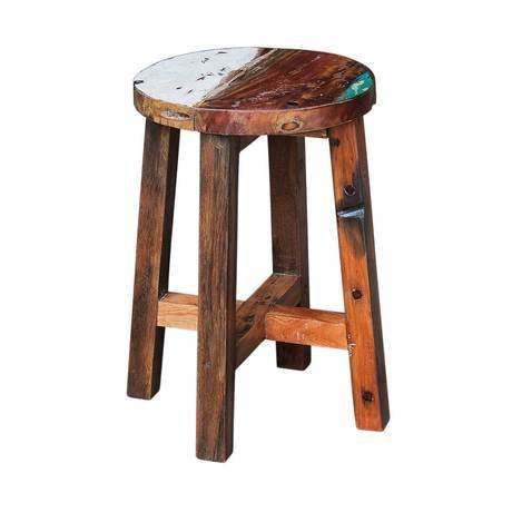 Табурет, выполненный из массива древесины старого рыбацкого судна, такой как: тик, махогон, суар, с сохранением оригинальной многослойной окраски.