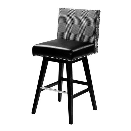 Барный стул Barstool Coppola на деревянных черных ножках. Спинка обтянута тканью черно-белого цвета, седушка обтянута кожей черного цвета. Декор: металлические заклепки.