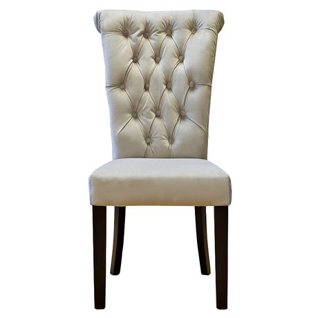 Стул с отделкой из льна бежевого цвета на деревянных черных ножках. Модель выполнена в технике "капитоне".