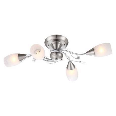 Количество ламп: 4; Мощность лампы, W: 40; Общая мощность, W: 160; Площадь освещения, м2: 8.9; Тип цоколя: E14; Тип лампочки (основной): Накаливания; Напряжение, V: 230; Степень защиты, IP: 20; Виды материалов: Стеклянные; Материал арматуры: Металл; Материал плафонов: Стекло; Цвет: Белый; Цвет арматуры: Матовый никель; Цвет плафонов: Белый; Место установки: На потолок.