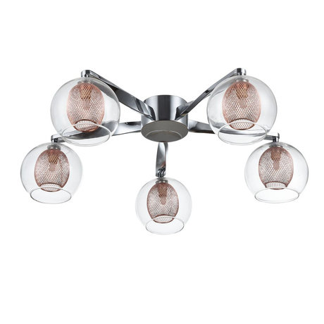 Бренд: Maytoni; Коллекция: Wabe; Количество ламп: 5; Мощность лампы, W: 60; Общая мощность, W: 300; Площадь освещения, м2: 16.7; Тип цоколя: E14; Тип лампочки (основной): Накаливания; Напряжение, V: 230; Степень защиты, IP: 20; Виды материалов: Стеклянные; Материал арматуры: Металл; Материал плафонов: Стекло; Цвет: Хром; Цвет арматуры: Хром; Цвет плафонов: Прозрачный; Место установки: На потолок.