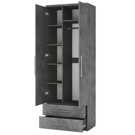 ХеленРаспашной двухдверный шкаф, ЛДСП, матовый фасад, железный камень, с ящиками и штангой, для спальни и гостиной